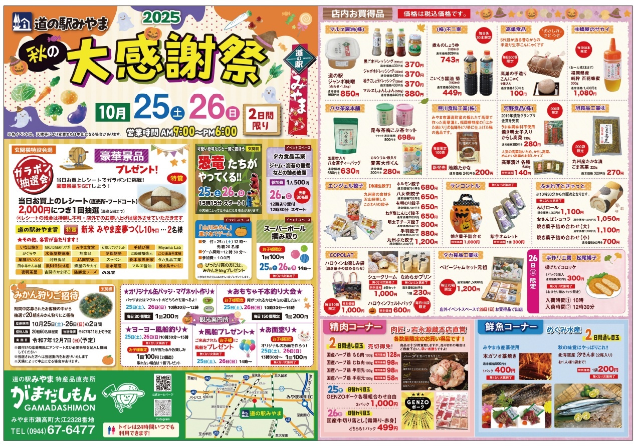 今週末は、「道の駅みやま秋の大感謝祭」開催!(10月25日~26日) 特売品、イベント情報は、クリックを!